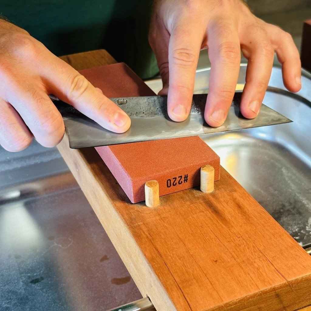 Etapa inicial de afiação antes de transição para grãos médios